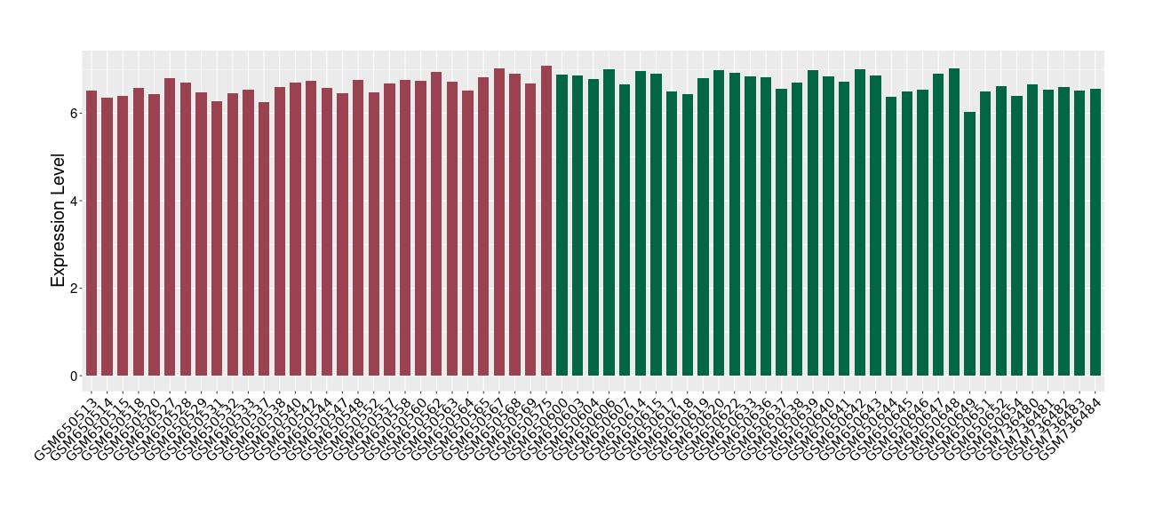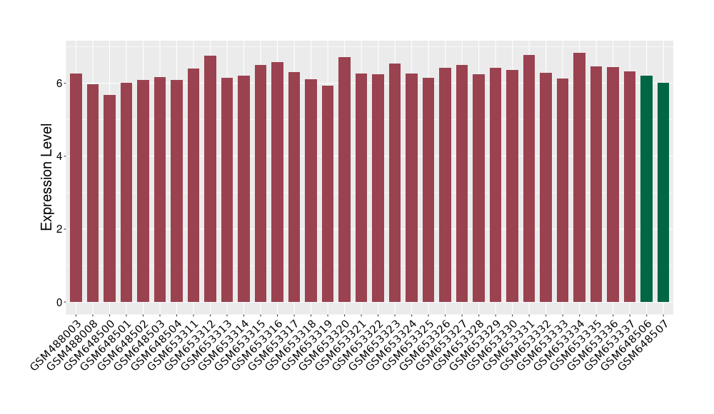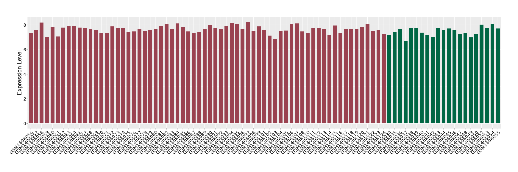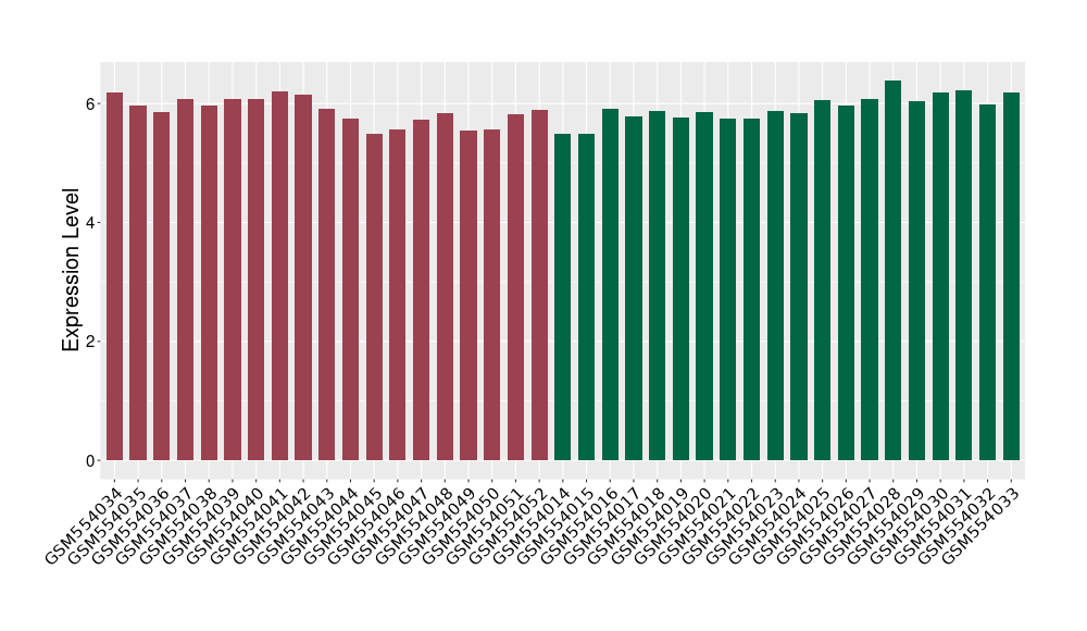 The Expression Level of Disease Section Compare with the Healthy Individual Tissue | p-value:0.040312668; Fold-change:-0.396534951; Z-score:-3.484520816 | ||||