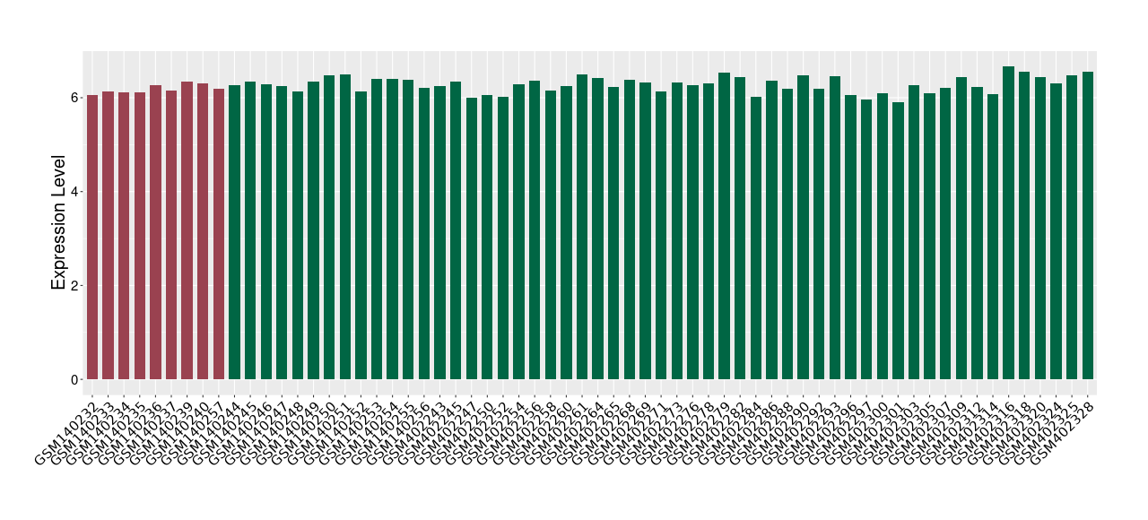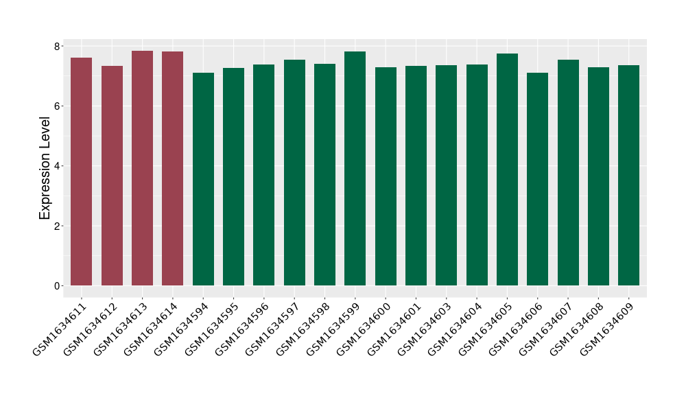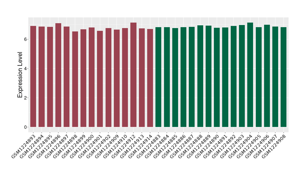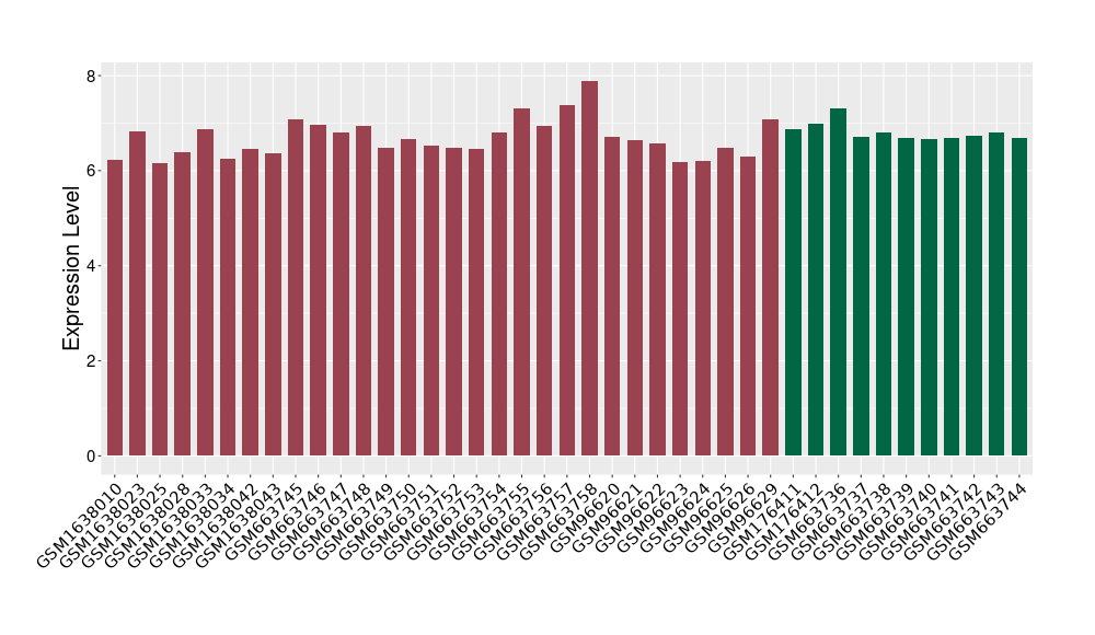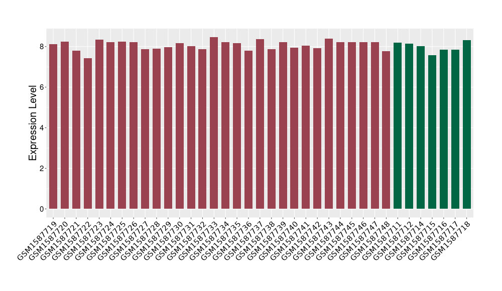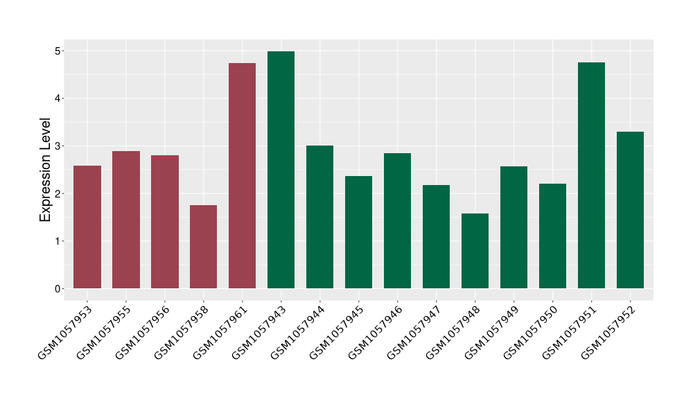 The Expression Level of Disease Section Compare with the Healthy Individual Tissue | p-value:0.020306524; Fold-change:-0.136228695; Z-score:-1.407885091 | ||||