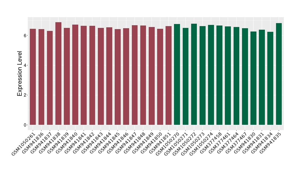 The Expression Level of Disease Section Compare with the Healthy Individual Tissue | p-value:0.234868293; Fold-change:-0.005732879; Z-score:-0.038740385 | ||||