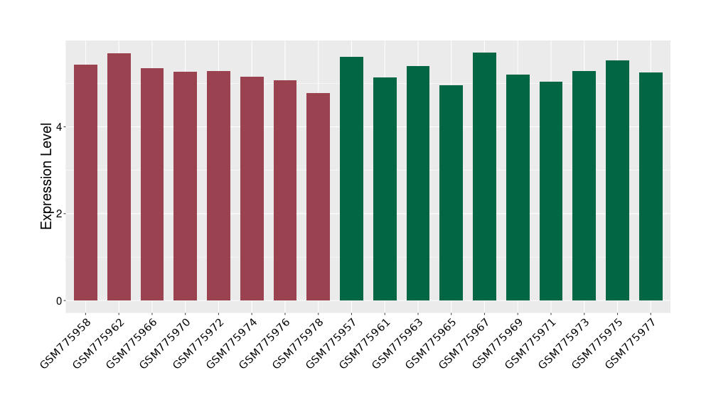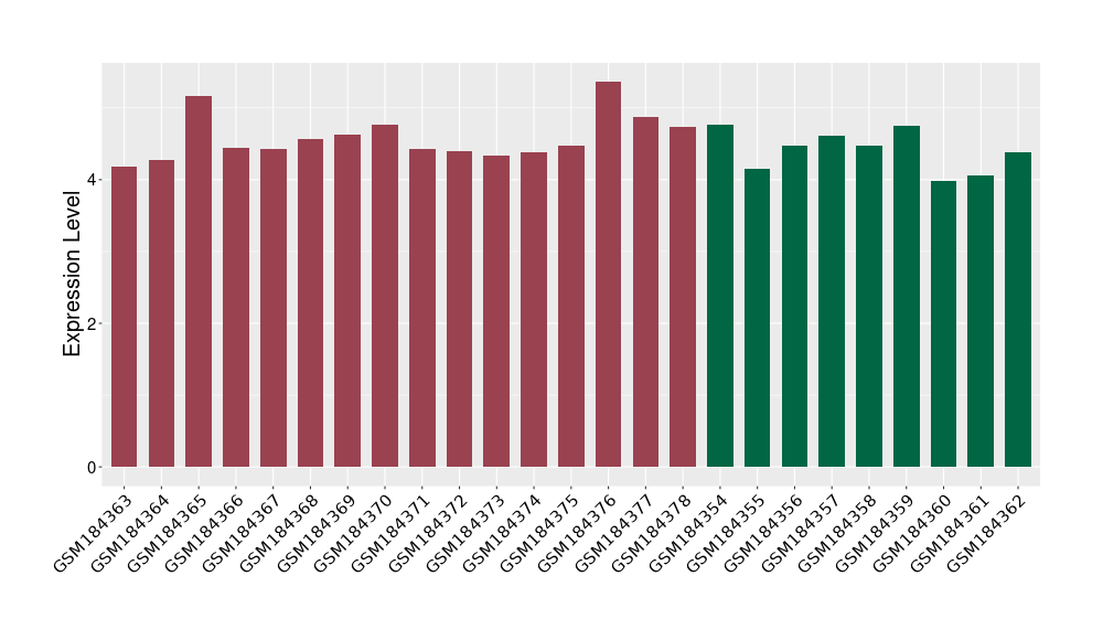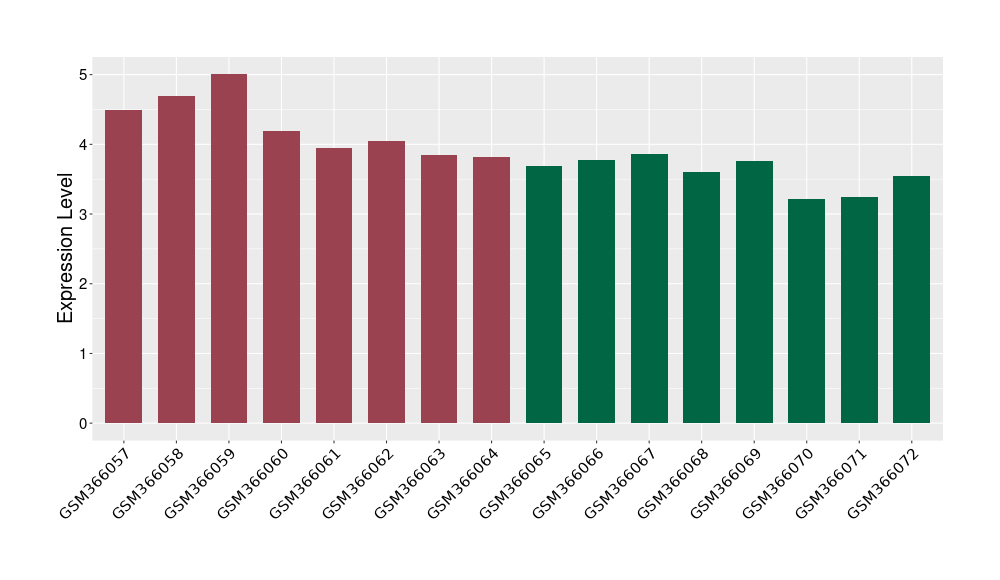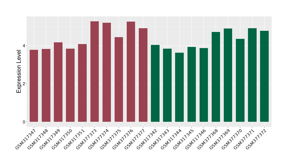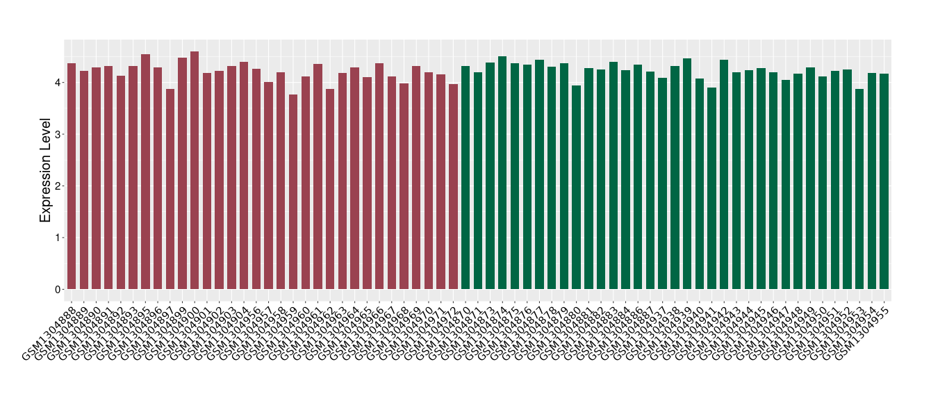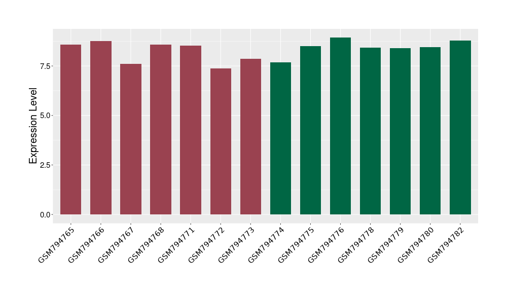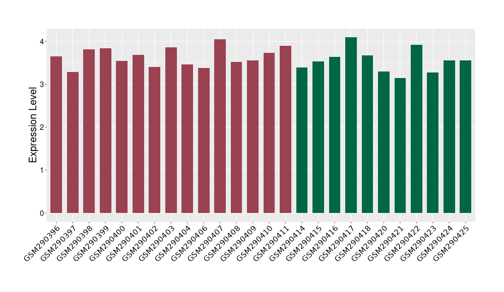 The Expression Level of Disease Section Compare with the Adjacent Tissue | p-value:2.37E-06; Fold-change:-0.159966003; Z-score:-0.511376396 | ||||