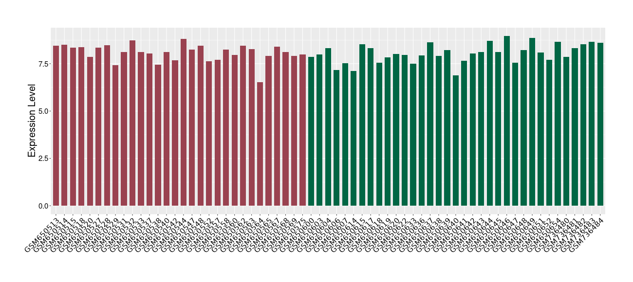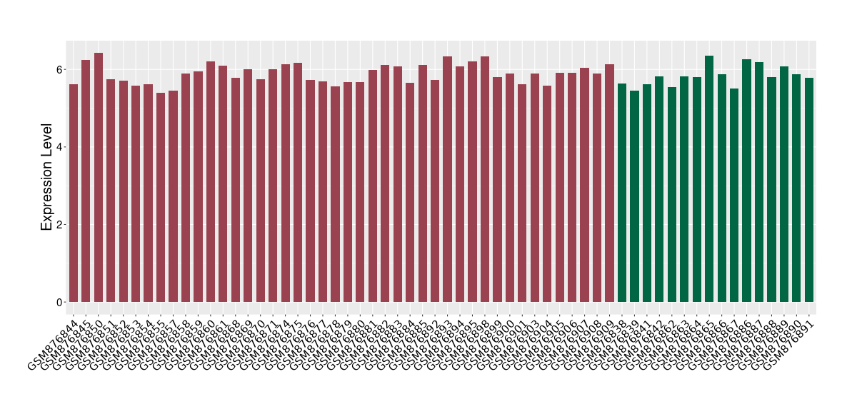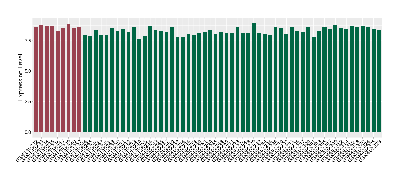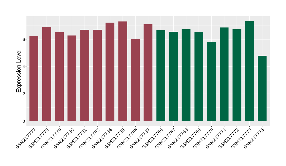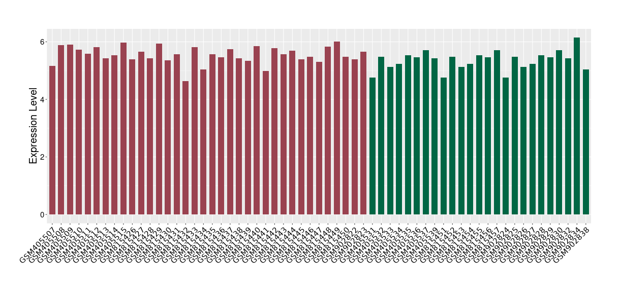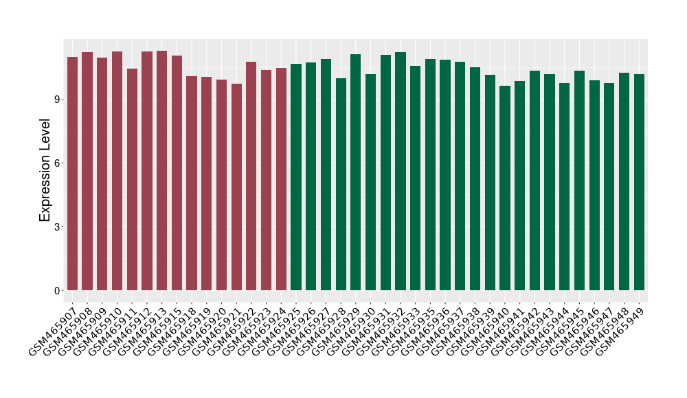 The Expression Level of Disease Section Compare with the Adjacent Tissue | p-value:2.37E-06; Fold-change:-0.159966003; Z-score:-0.511376396 | ||||