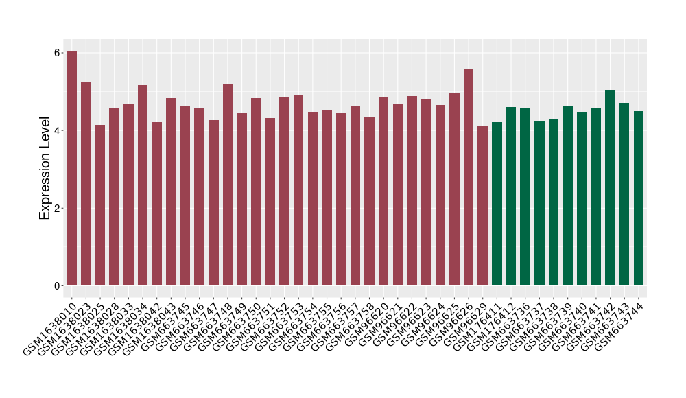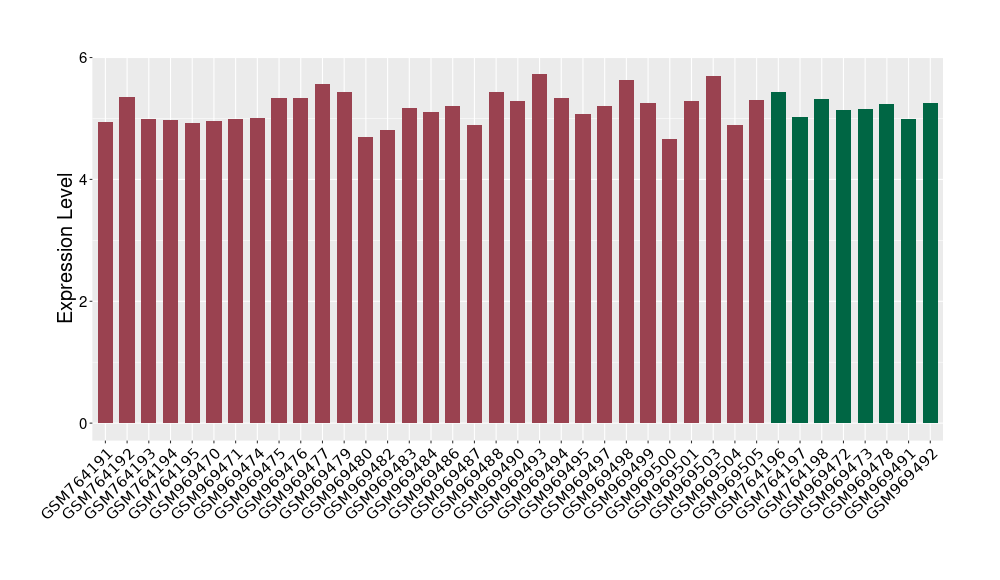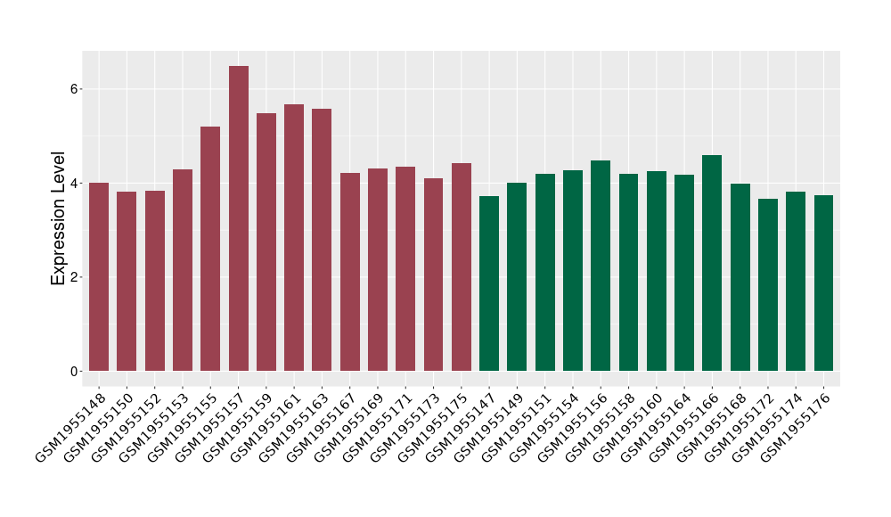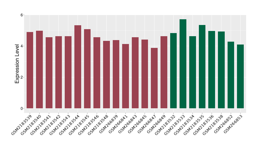 The Expression Level of Disease Section Compare with the Healthy Individual Tissue | p-value:0.065106084; Fold-change:0.275269739; Z-score:1.633108946 | ||||