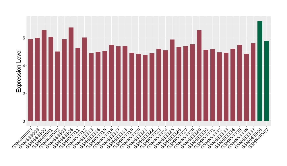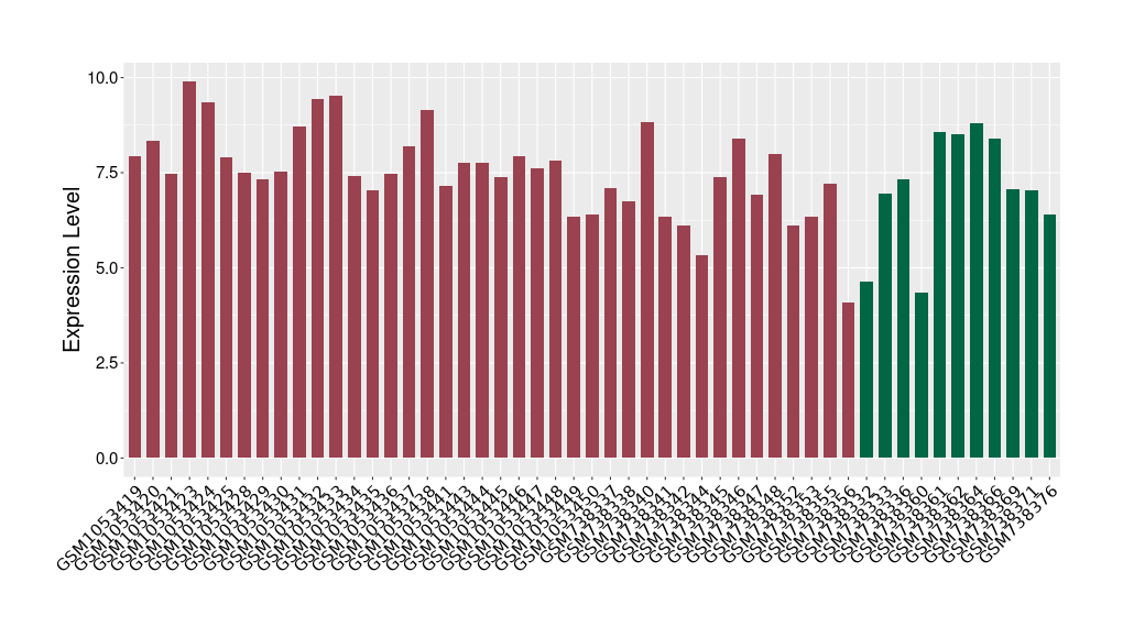 The Expression Level of Disease Section Compare with the Healthy Individual Tissue | p-value:0.044976411; Fold-change:0.446700853; Z-score:3.812773773 | ||||