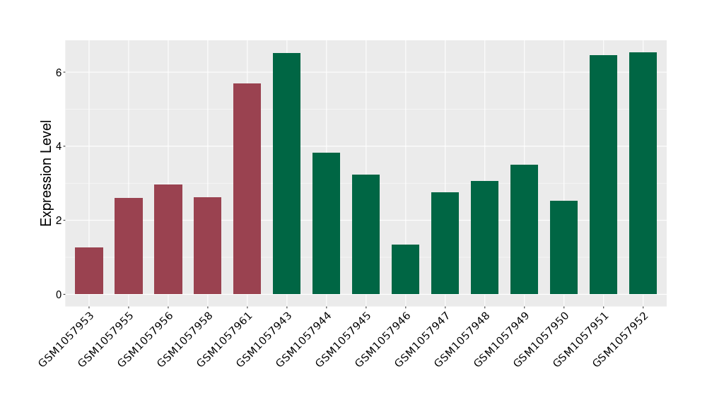 | The Expression Level of Disease Section Compare with the Healthy Individual Tissue | p-value:0.006644818; Fold-change:-1.266249773; Z-score:-1.845263346 | ||||