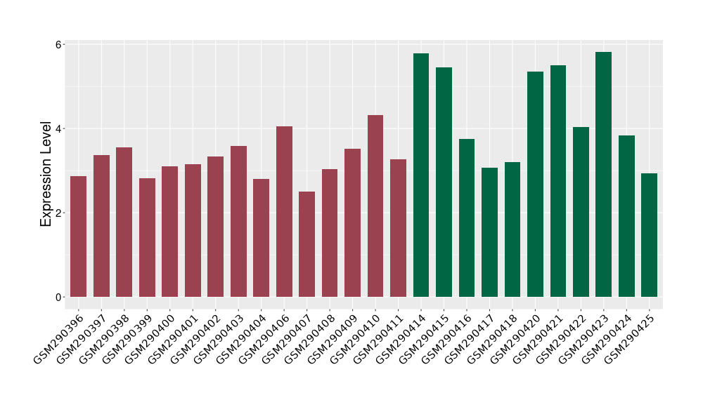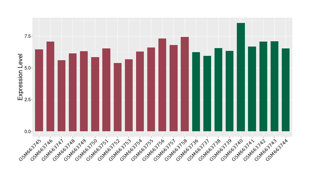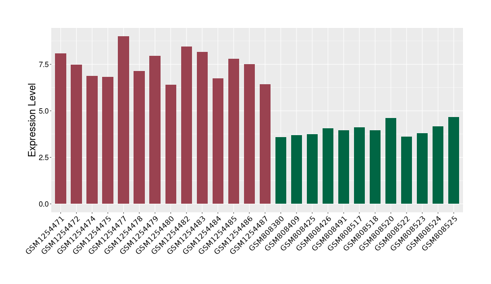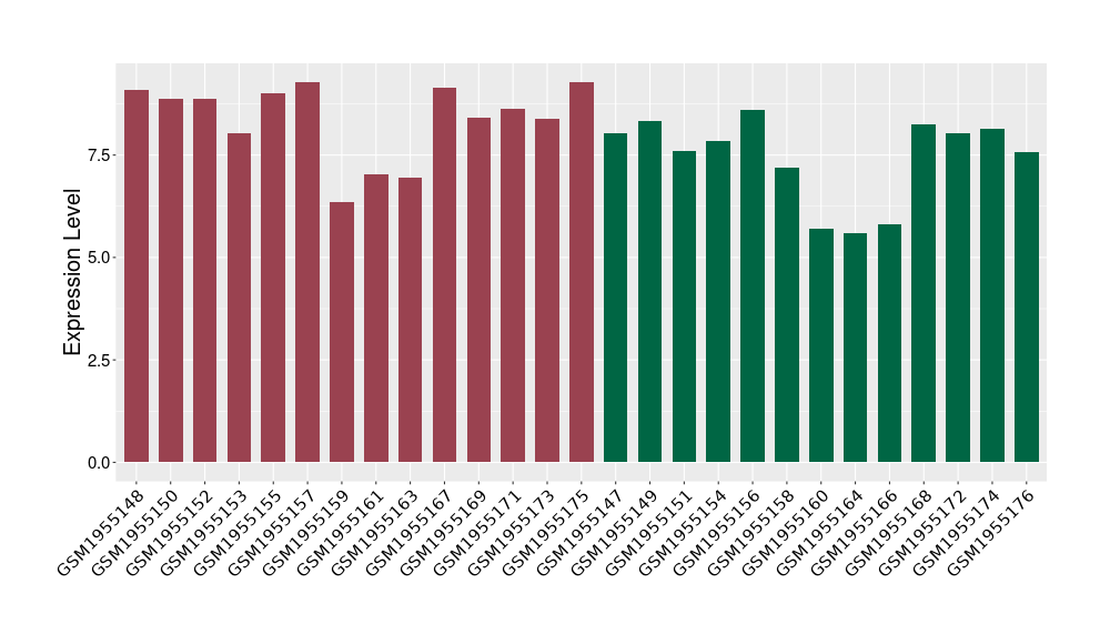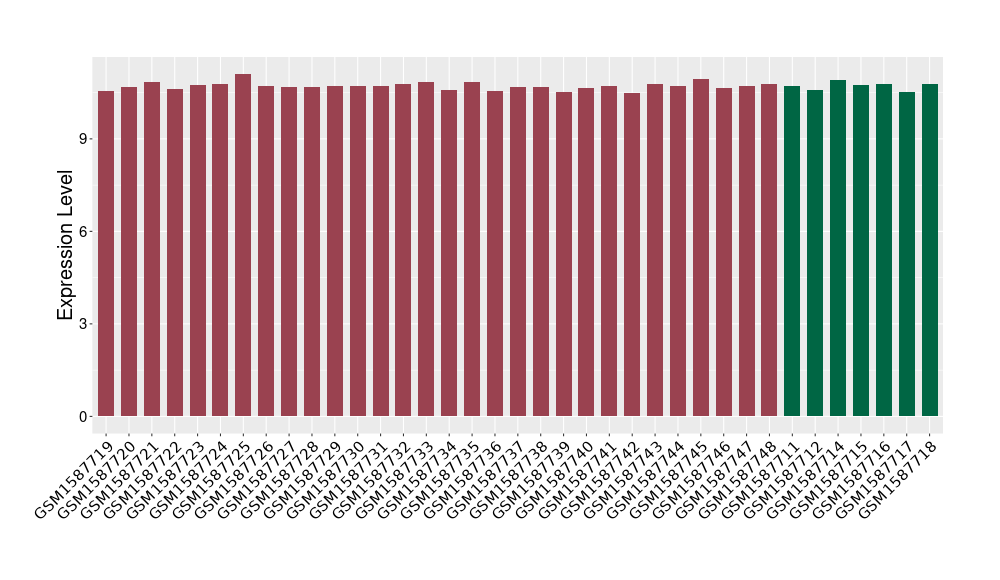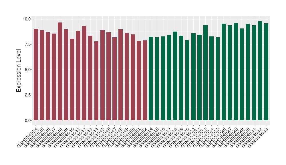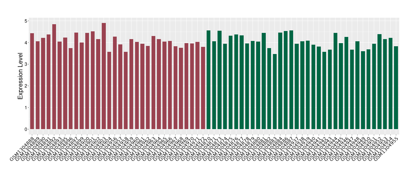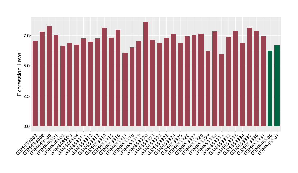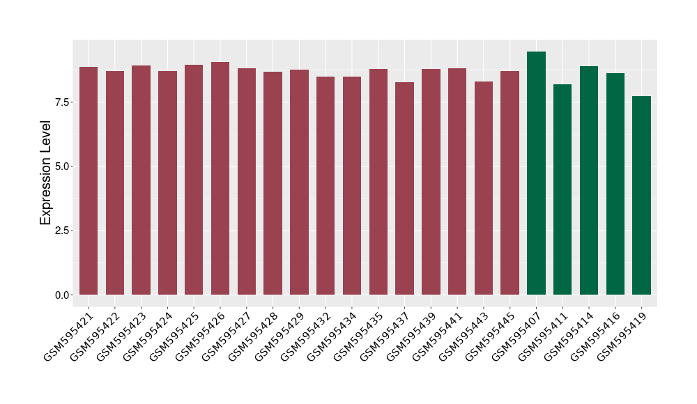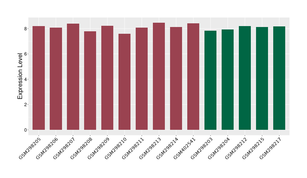 The Expression Level of Disease Section Compare with the Healthy Individual Tissue | p-value:0.900001066; Fold-change:-0.02455447; Z-score:-0.187325028 | ||||