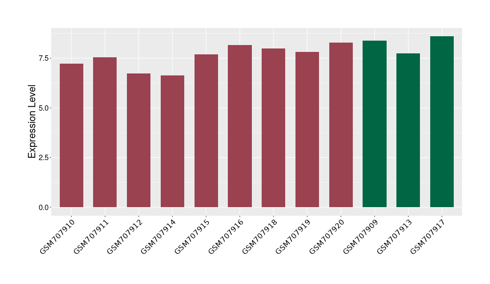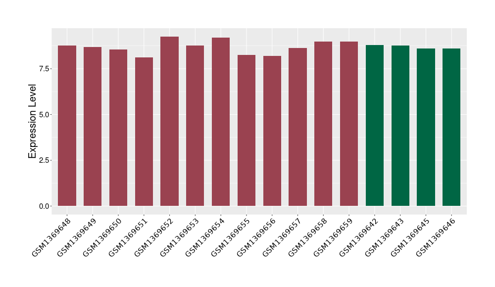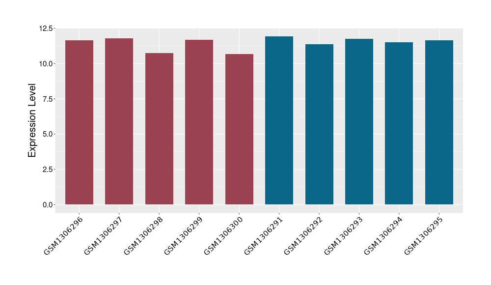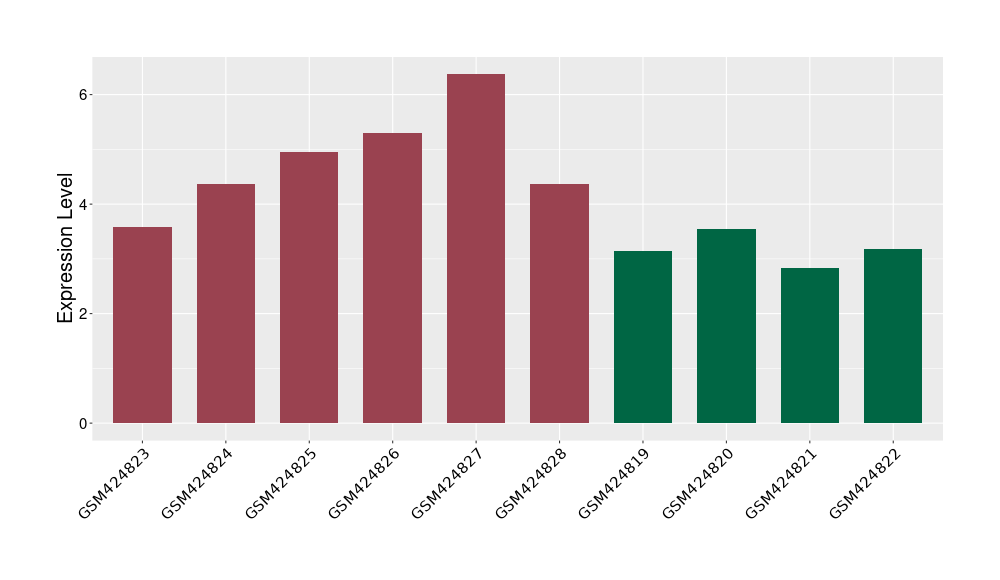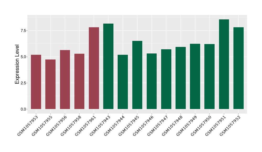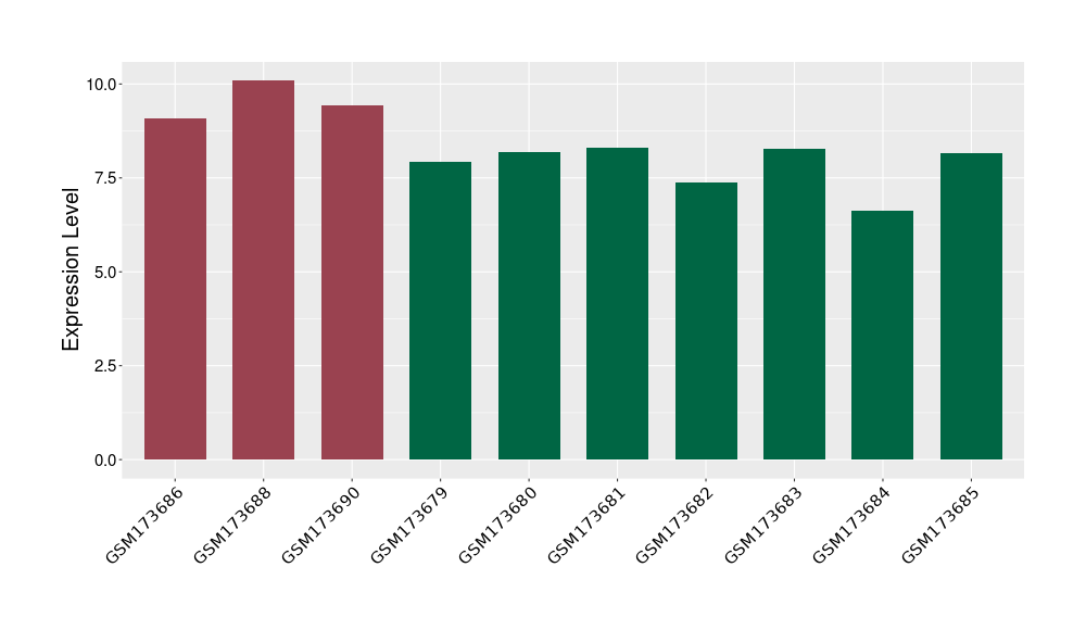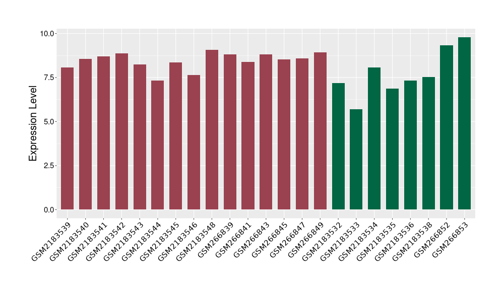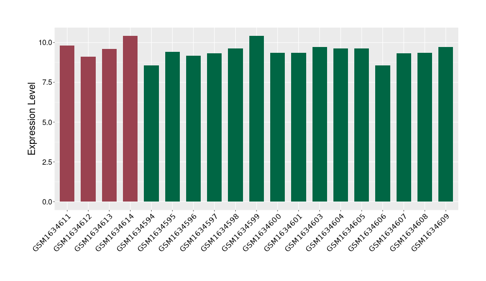 The Expression Level of Disease Section Compare with the Healthy Individual Tissue | p-value:0.097013249; Fold-change:-0.689192418; Z-score:-1.543577849 | ||||