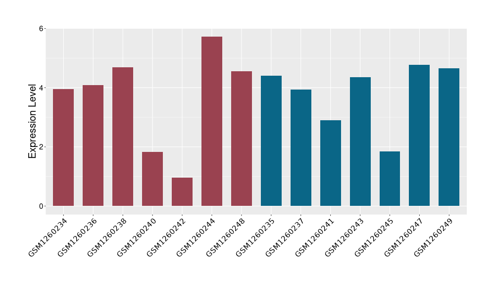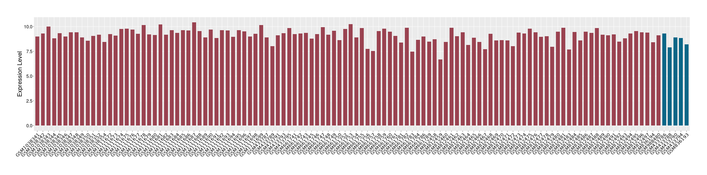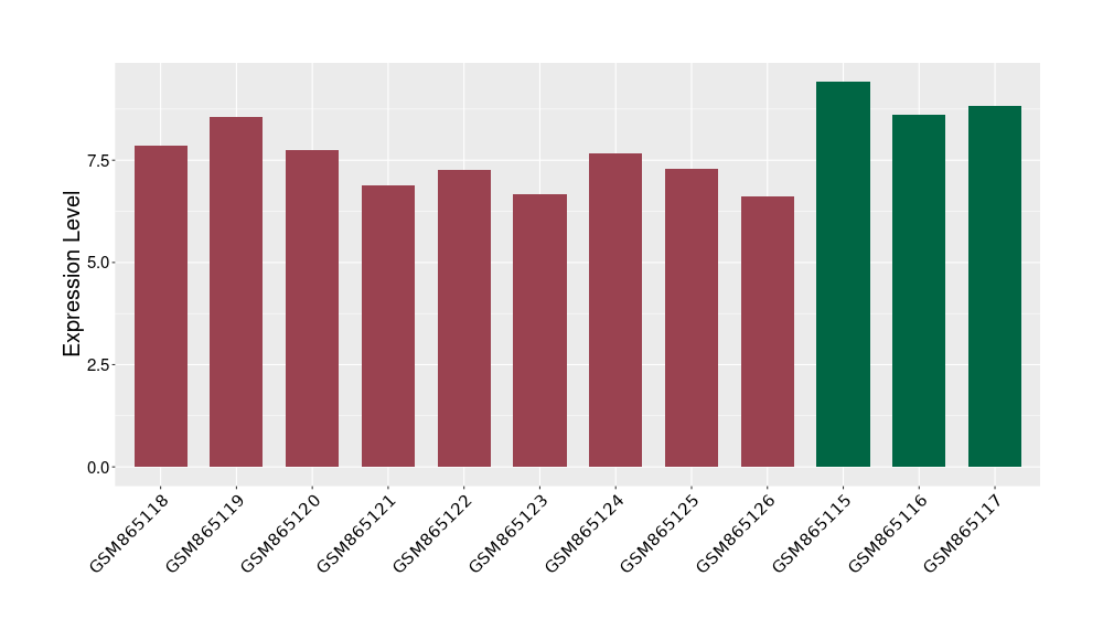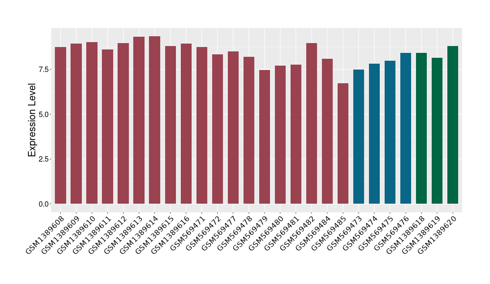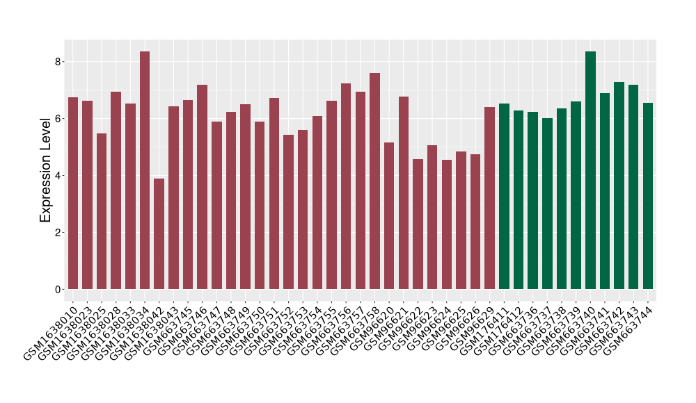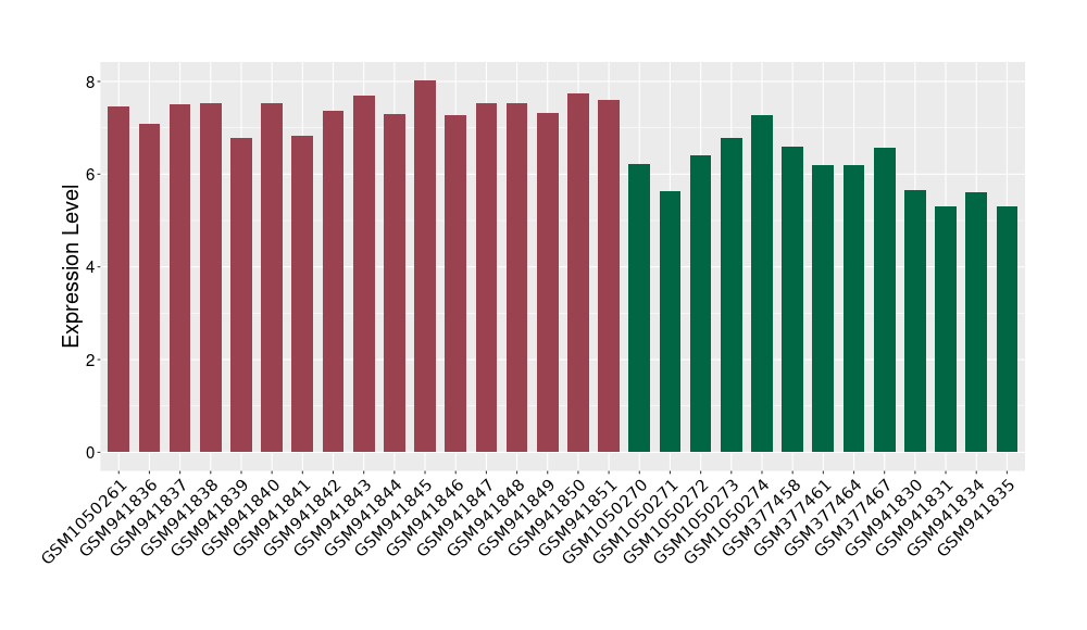 The Expression Level of Disease Section Compare with the Healthy Individual Tissue | p-value:0.097013249; Fold-change:-0.689192418; Z-score:-1.543577849 | ||||