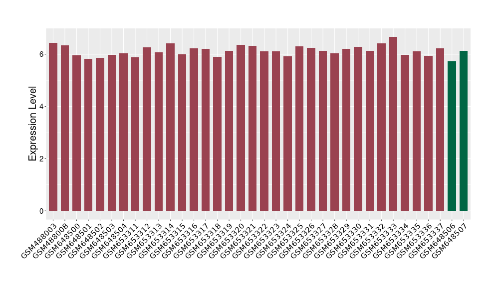 The Expression Level of Disease Section Compare with the Healthy Individual Tissue | p-value:0.010865342; Fold-change:0.32345743; Z-score:2.67779088 | ||||