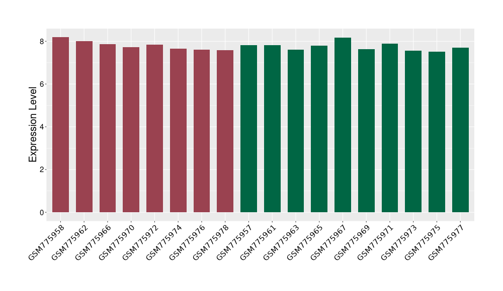 The Expression Level of Disease Section Compare with the Healthy Individual Tissue | p-value:0.763852823; Fold-change:-0.017450763; Z-score:-0.118263837 | ||||